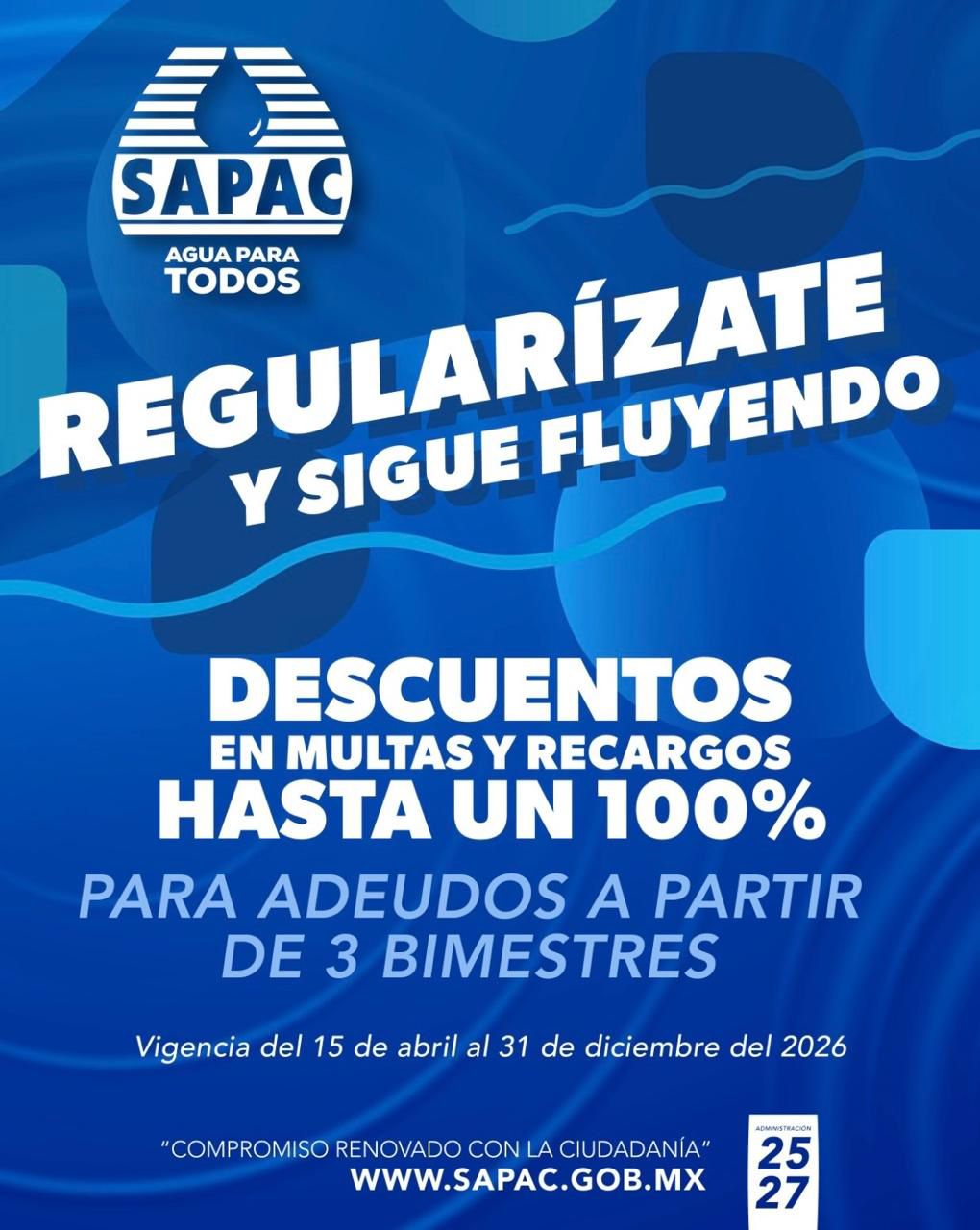 El programa estará vigente hasta el 31 de diciembre del presente año, con atención directa en las oficinas centrales del SAPAC, ubicadas en avenida Morelos Sur, colonia Centro, en horario habitual.
