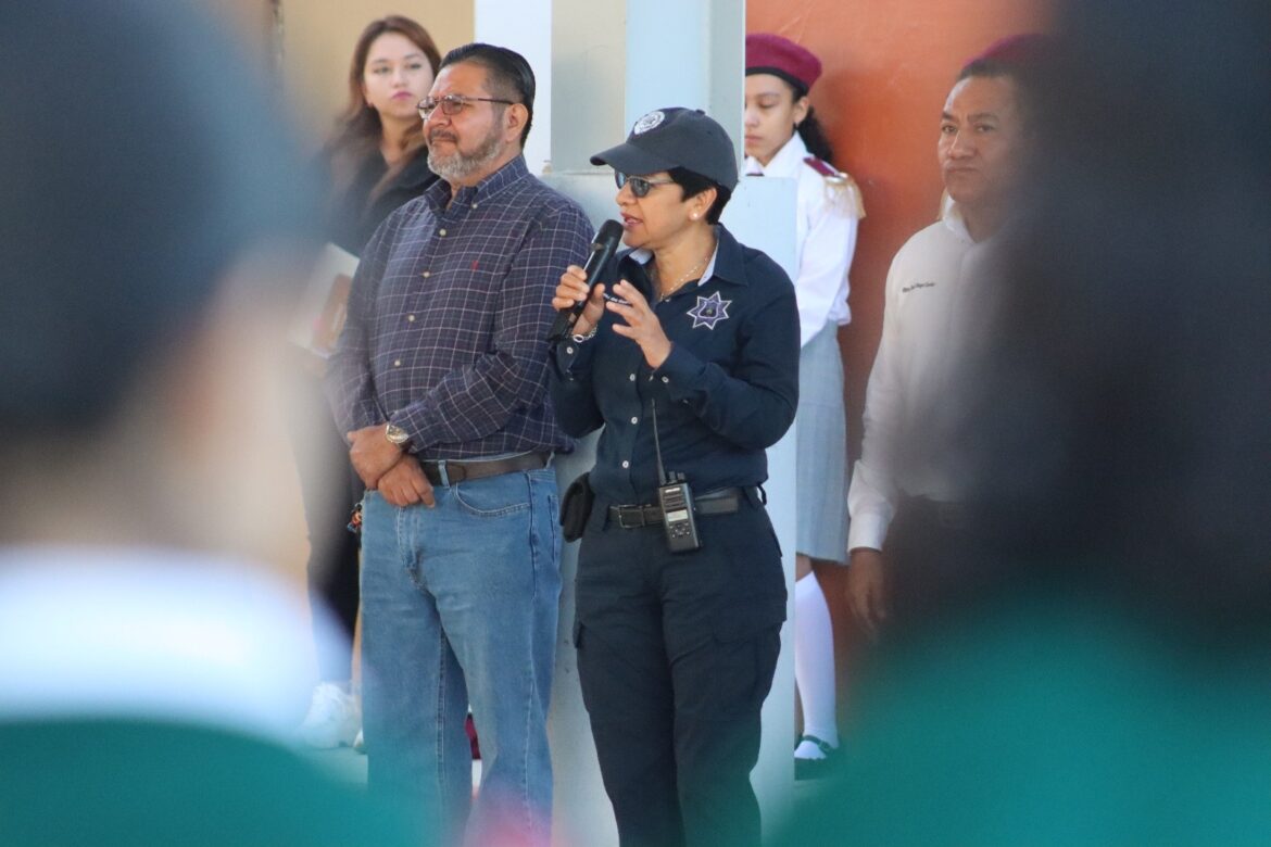 Al intervenir, Alicia Vázquez mencionó que los jóvenes y en este caso las y los estudiantes juegan un papel fundamental, ya que son los agentes del cambio para transformar el ambiente social que es inaceptable por la inseguridad, conductas antisociales falta de participación ciudadana, impulsando desde sus escuelas y casa actividades comunitarias y solidarias, de apoyo a sectores que más lo necesitan, promoviendo la educación y la cultura cívica.
