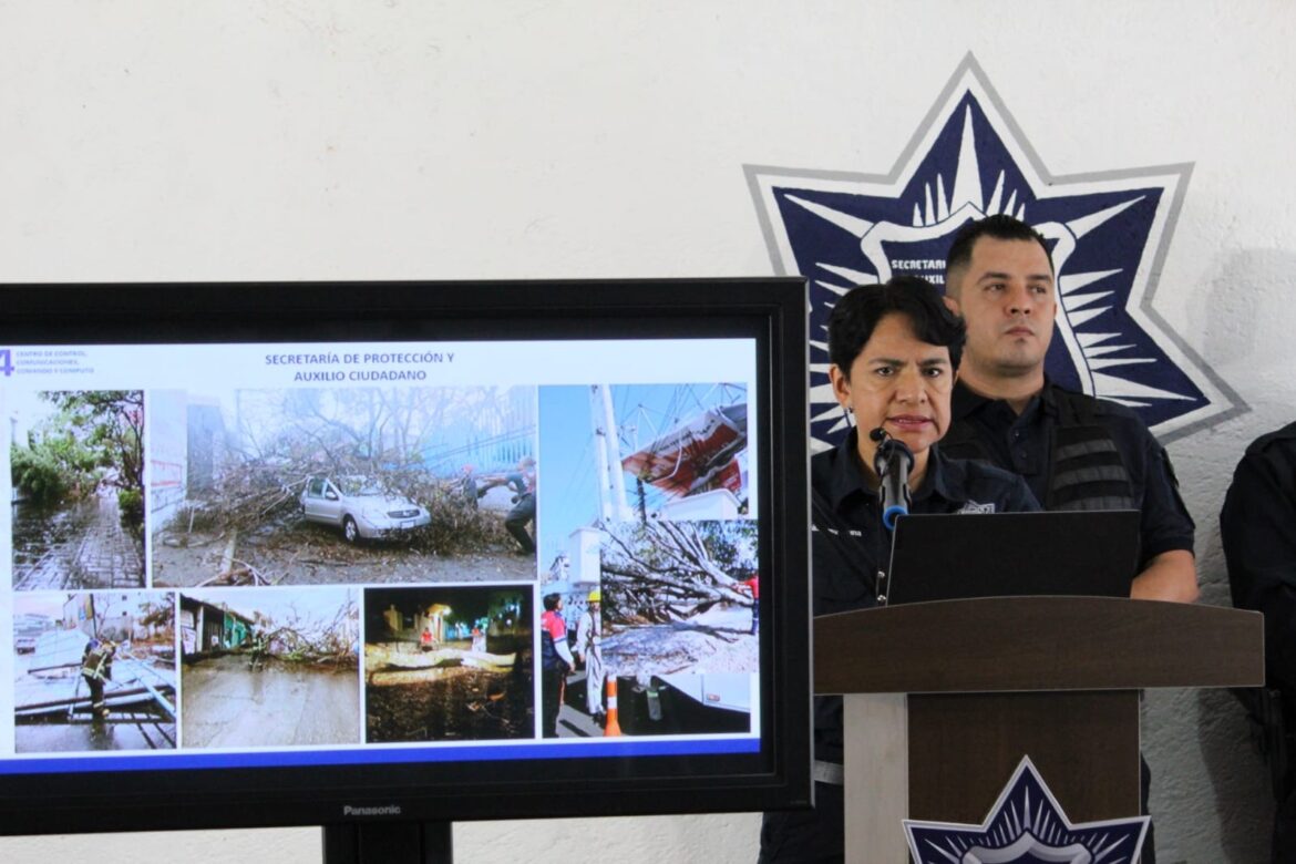 En conferencia de prensa semanal, indicó que recibieron un aproximado de 26 reportes de afectaciones que se ubicaron en el Centro Histórico, como fue la caída de árboles sobre una barda en la calle Leandro Valle, en calle Cuauhtemotzin esquina con Humboldt donde se desplomó sobre un automóvil dejando a personas atrapadas al interior, en las calles No Reelección esquina Victoria, Motolinía, Lerdo de Tejada, en el Parque Revolución y el colapso de un espectacular en la glorieta de Los Caballitos cerca del mercado Adolfo López Mateos que afectó las líneas de energía eléctrica, teniendo que intervenir el Heroico Cuerpo de Bomberos, la Secretaría de Desarrollo Sustentable y Servicios Públicos y CFE.
