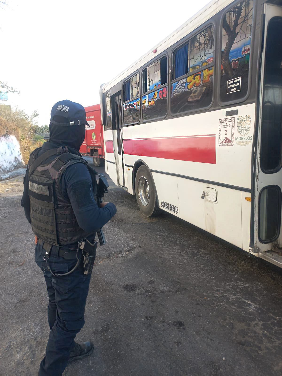 Como parte de estas acciones, se instalaron puntos de revisión estratégicos a la altura del IMSS (Norte–Sur) de la línea de autobuses Lasser, en la colonia Ricardo Flores Magón, y sobre la carretera federal Cuernavaca–Taxco, en la colonia Adolfo López Mateos, donde se realizaron inspecciones preventivas a unidades del transporte público, vehículos particulares y personas.