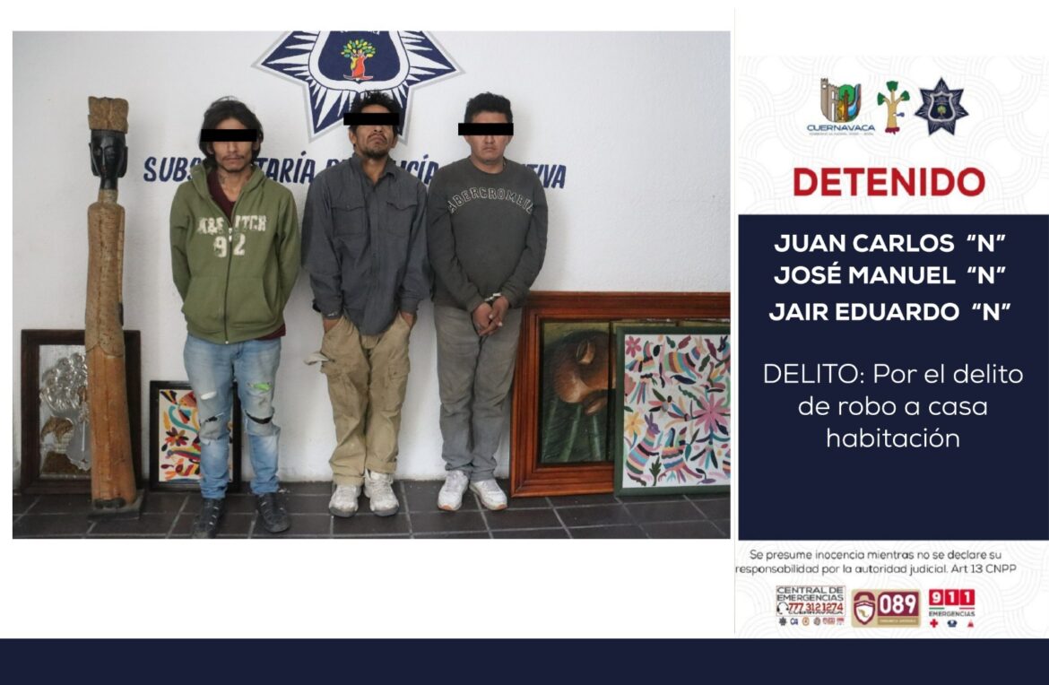 Esto lo refrendó la titular de SEPRAC, Alicia Vázquez Luna, tras dar a conocer la detención de tres hombres de nombres Jaird Eduardo “N”, José Manuel “N” y Juan Carlos “N” el pasado 11 de enero en la colonia Analco, por su probable participación en el delito de robo a casa habitación, por lo que fueron puestos a disposición del Ministerio Público.