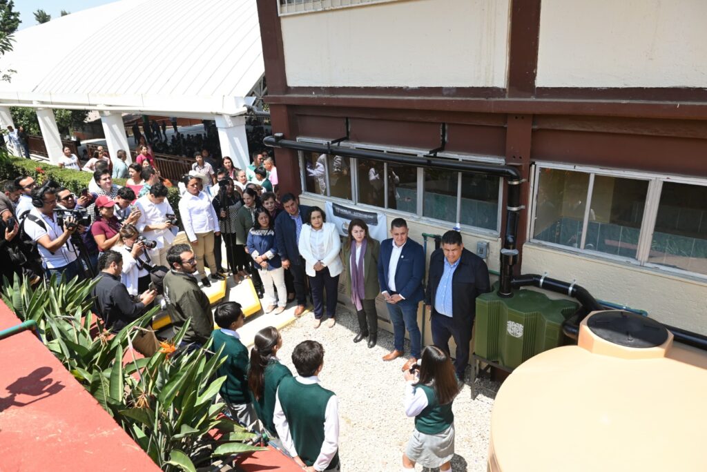 Posteriormente, la mandataria estatal tomó protesta a las y los estudiantes que, como delegados ambientales, estarán a cargo de la operación del equipo instalado.