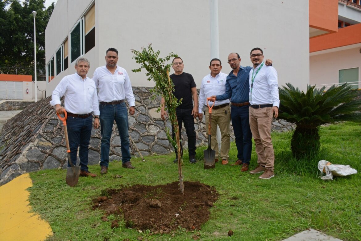 • El presidente municipal, José Luis Urióstegui participó este viernes en la plantación de 18 especies arbóreas nativas en la Sub Estación de la paraestatal en Teopanzolco