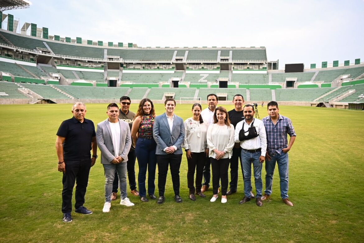 Como parte de su visita a la zona sur de Morelos, y para concluir su gira en el municipio de Zacatepec, la Gobernadora Margarita González Saravia recorrió las instalaciones del estadio de futbol Agustín “Coruco” Díaz, para supervisar las condiciones del inmueble, con el objetivo de habilitarlo para que sea un punto de encuentro de niñas, niños, jóvenes y personas adultas de todo el estado.
