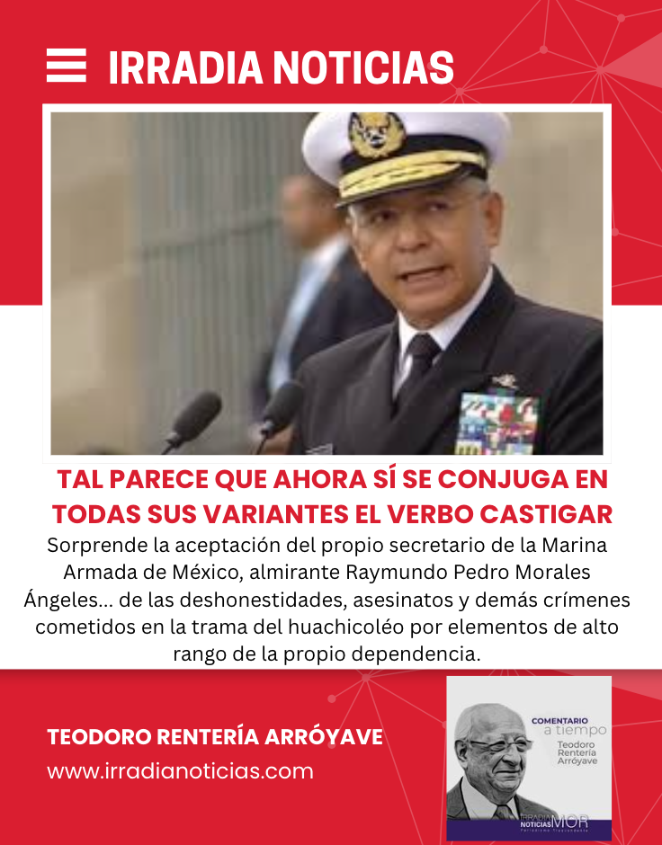 Acostumbrados como estamos, casi todos los mexicanos, con excepción de periodistas compromertidos, a que los funcionarios de poder incluyendo a no pocos presidentes de la República, conjugan o conjugaron en todas las formas los verbos ocultar, solapar, disimular, falsear, encubrir y sobre todo negar las corruptelas, los abusos, las complicidades, los asesinatos y los genocidios como los de “La Guerra Sucia”, “La matanza del 68”, “La del Jueves de Corpus”, “Acteal” y “Ayotzinapa”, por mencionar sólo los más recientes, porque según se afirmaba: era prioridad preservar la integridad y prestigio de las instituciones, es decir no ensuciarlas, sin importar las víctimas y sus familias y los daños a la nación, por tanto sorprende de gran manera y se reconoce, así de simple sin adjetivo, la aceptación del propio secretario de la Marina Armada de México, almirante Raymundo Pedro Morales Ángeles, obvio, por mandato de la propia presidenta de la República, Claudia Sheinbaum Pardo, de las deshonestidades, asesinatos y demás crímenes cometidos en la trama del huachicoléo por elementos de alto rango de la propio dependencia.