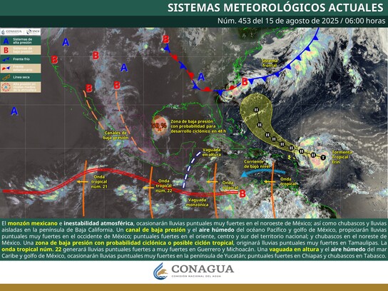 La Comisión Estatal del Agua (Ceagua) da a conocer la perspectiva meteorológica para Morelos durante este fin de semana del 15 al 17 de agosto, donde se esperan días con ambiente fresco a caluroso, cielos con nubosidad variable y probabilidad de lluvias acompañadas de tormentas eléctricas durante las tardes y noches. Las precipitaciones podrían concentrarse principalmente en las regiones norte y sur del territorio Morelos.