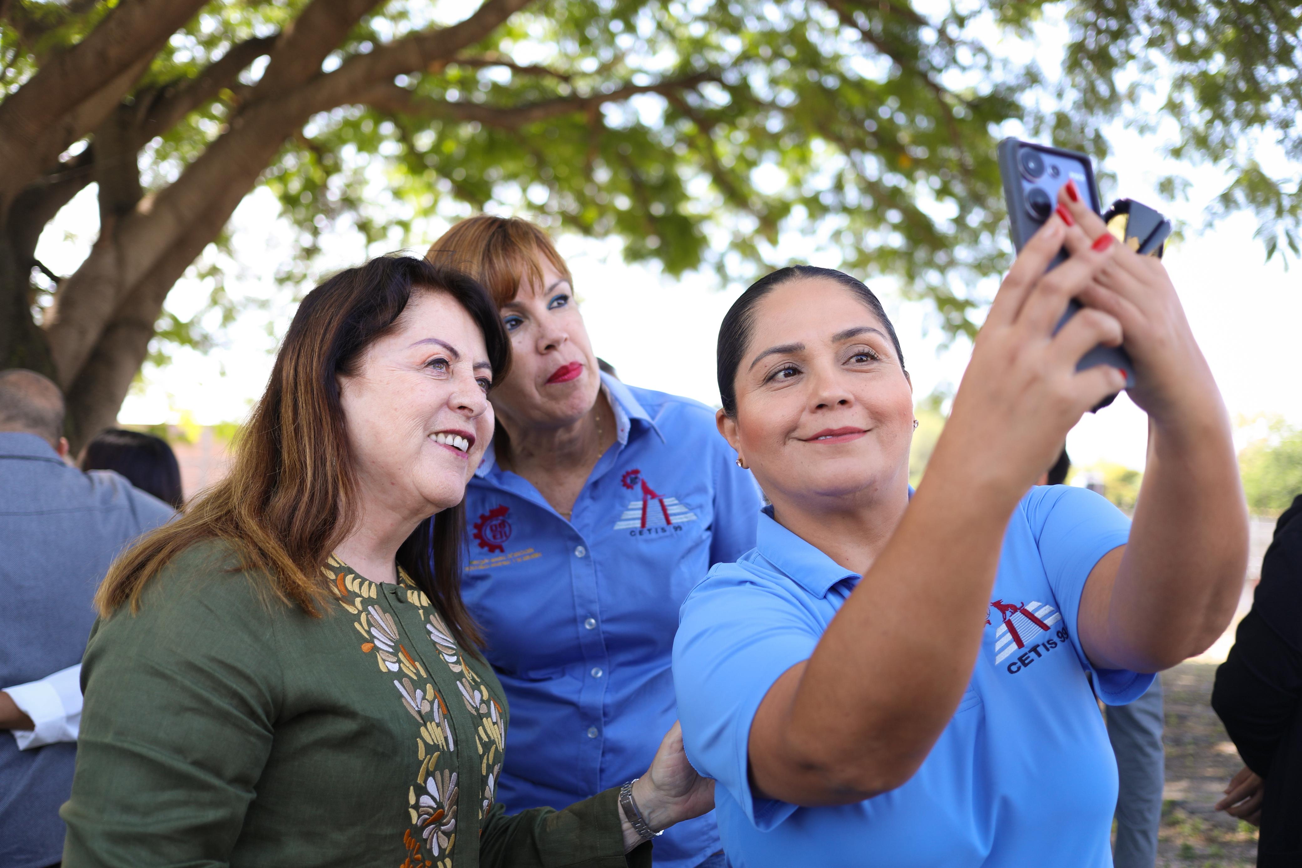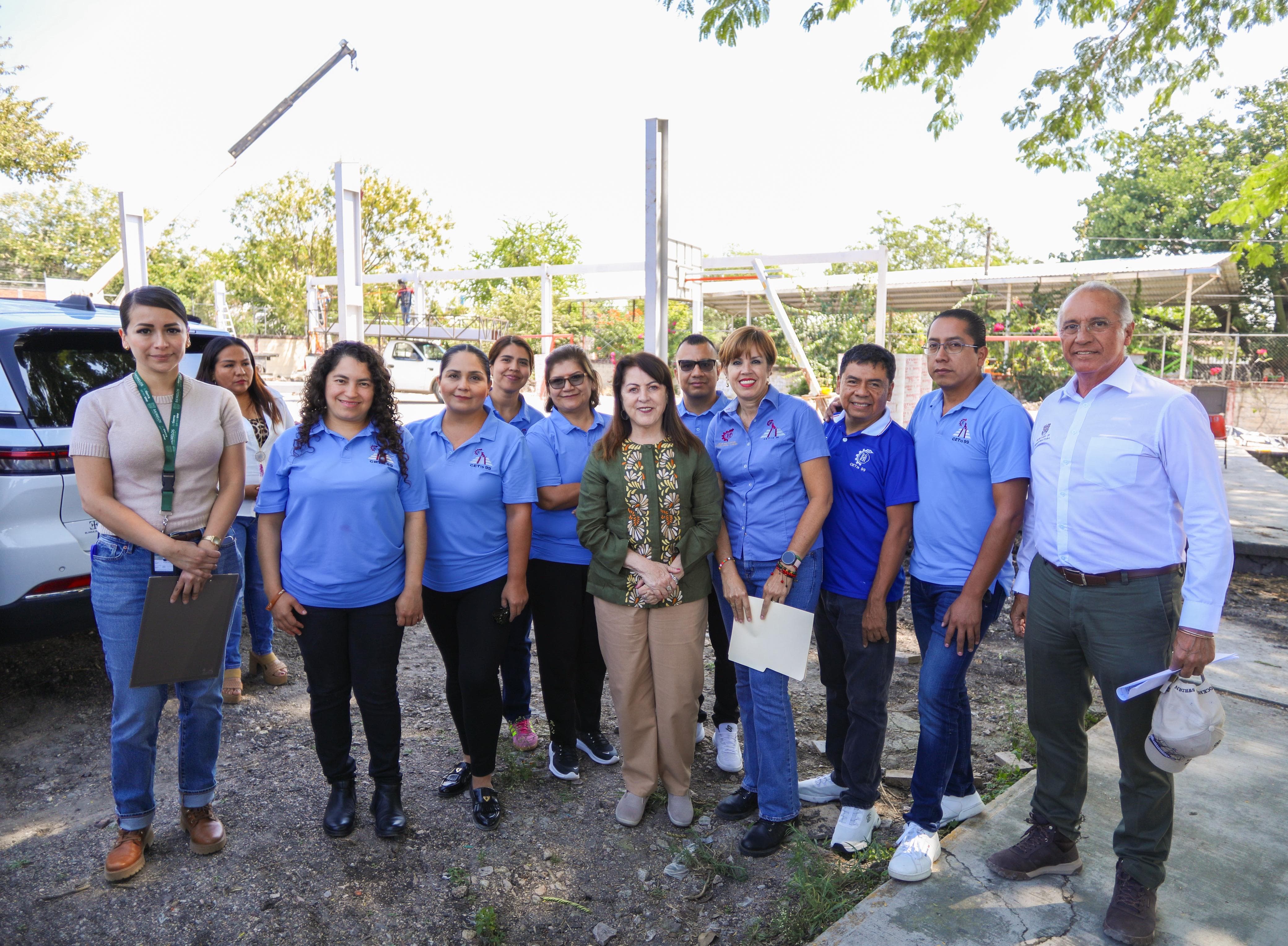Finalmente, la Gobernadora verificó la colocación de una techumbre en el Centro de Estudios Tecnológicos Industrial y de Servicios (CETis) No. 99, ubicado en la colonia Paraíso, la cual abarca 493 metros cuadrados e implica una inversión de tres millones 879 mil pesos, lo que beneficiará a mil 395 jóvenes, quienes dispondrán de un área apropiada para actividades deportivas y culturales.