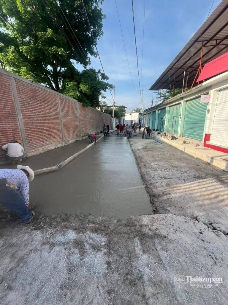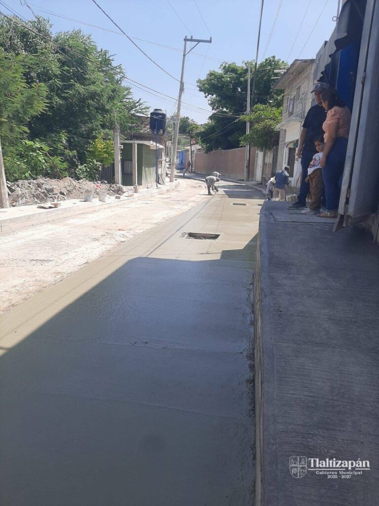 El Ayuntamiento de Tlaltizapán, a través de la Dirección de Obras Públicas, lleva a cabo la pavimentación con concreto hidráulico de la calle Mártires 13 de Agosto, en la comunidad de Huatecalco.