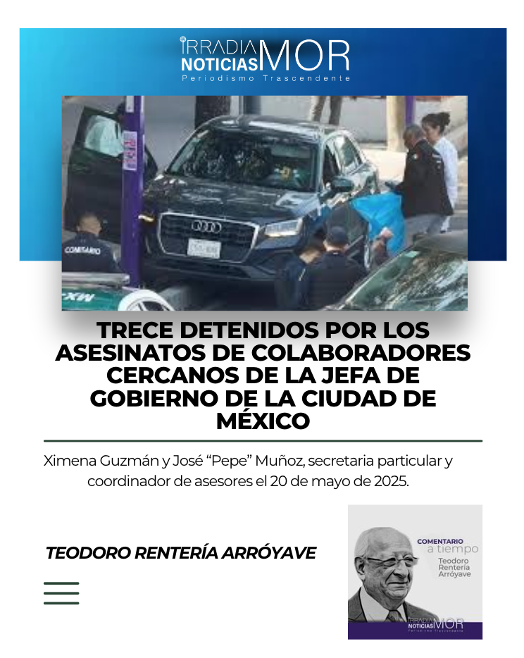 Fueron detenidas 13 personas relacionadas con los asesinatos de Ximena Guzmán y José “Pepe” Muñoz, secretaria particular y coordinador de asesores, respectivamente, de la Jefa de Gobierno de la Ciudad de México; la propia gobernante de la Capital de la República, Clara Brugada Molina dio a conocer la noticia que, se expandió en segundos en todo el país y en el mundo, ya que los medios electrónicos y la mayoría de los diarios nacionales la reprodujeron en sus plataformas cibernéticas.