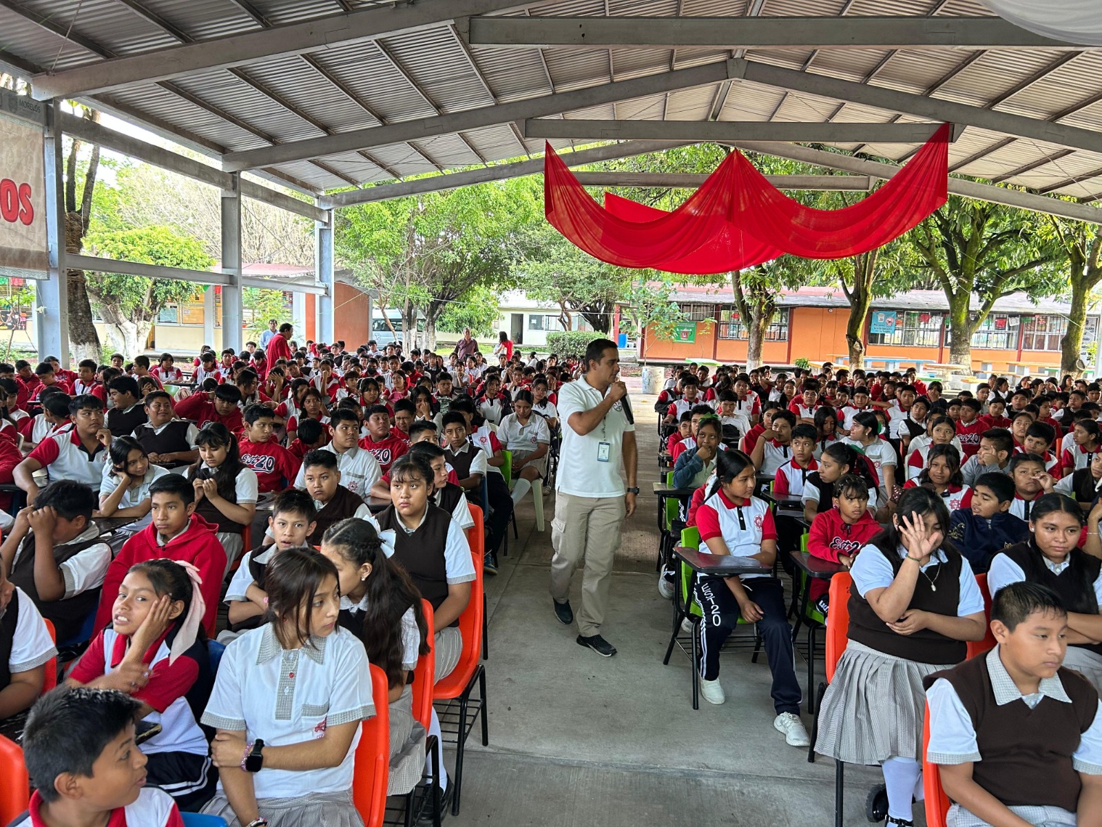 Coatetelco, Mor., 17 de septiembre de 2025. El Tribunal Unitario de Justicia Penal para Adolescentes (TUJPA), en coordinación con el área de Prevención del Delito del municipio de Coatetelco, llevó a cabo la conferencia “Adicciones y Violencia” en la Secundaria Técnica No. 20, dirigida a 500 estudiantes de la comunidad.