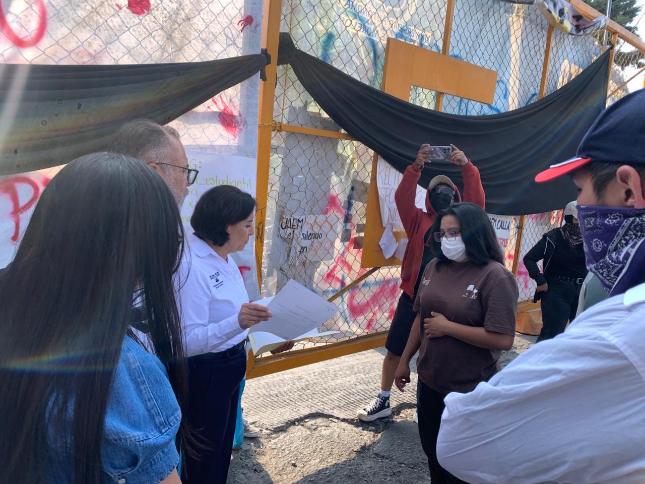 Un nuevo intento al diálogo entre autoridades y estudiantes de la Universidad Autónoma del Estado de Morelos, UAEM, ha quedado abierto con la invitación formalizada por parte de la rectora, Dra. Viridiana Aydeé León Hernández; el escrito de invitación fue entregado a la guardia de alumnos apostados en la puerta principal del campus Chamilpa, de manos de la Mtra. María Delia Adame Arcos, Secretaria General de la UAEM uy del Mtro. Alberto Gaytán Alegría, Director General de Educación Superior de la UAEM.