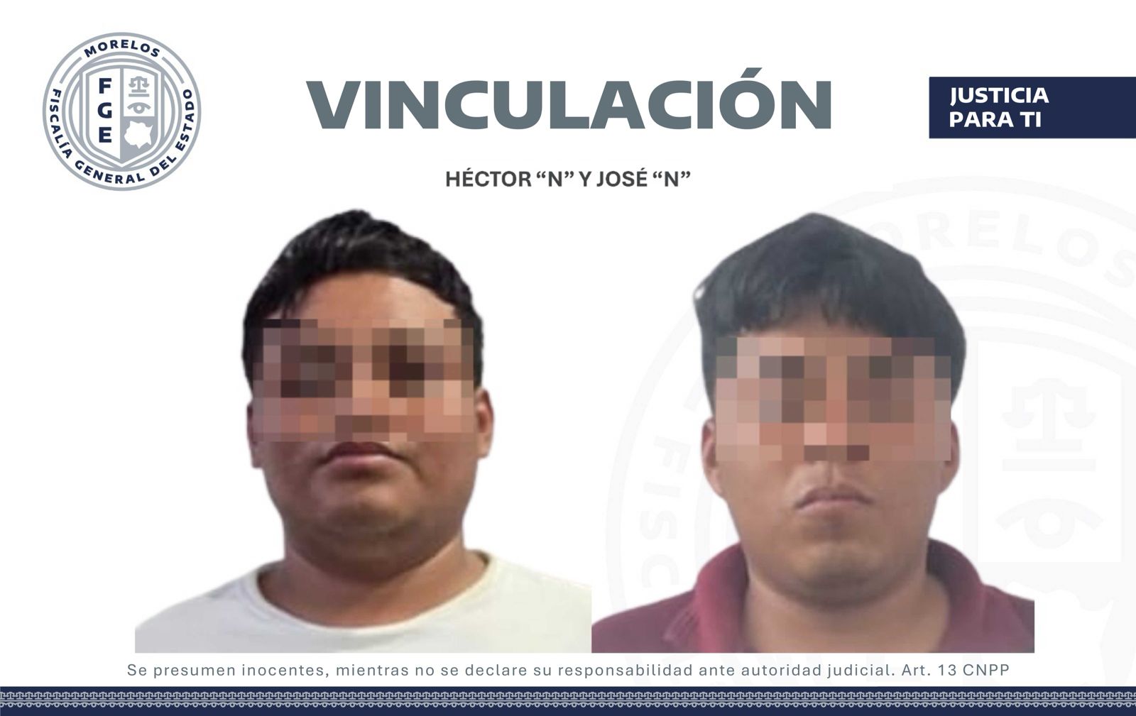 La Fiscalía Regional Oriente obtuvo un auto de vinculación a proceso en contra de Héctor “N” y José “N”, por la probable comisión del delito de violación en perjuicio de una adolescente, en hechos ocurridos en el municipio de Ayala.
