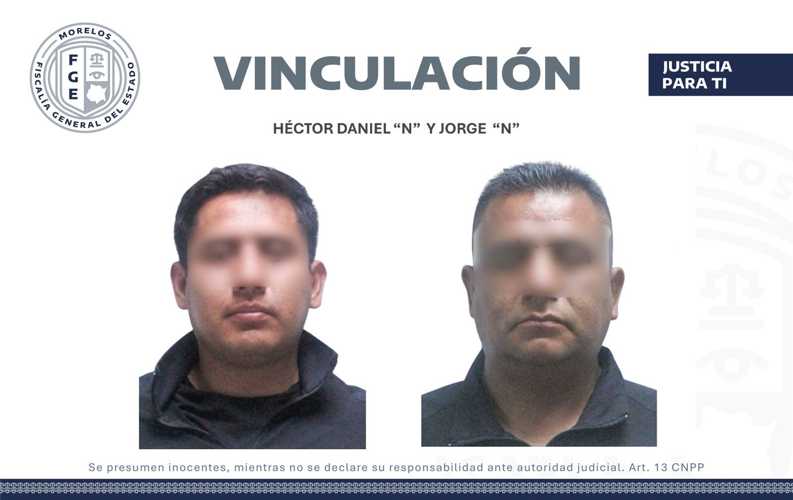La Fiscalía Regional Metropolitana obtuvo un auto de vinculación a proceso en contra de Héctor Daniel “N” y Jorge “N”, por la probable comisión del delito de homicidio calificado, en perjuicio de un hombre en el municipio de Cuernavaca.