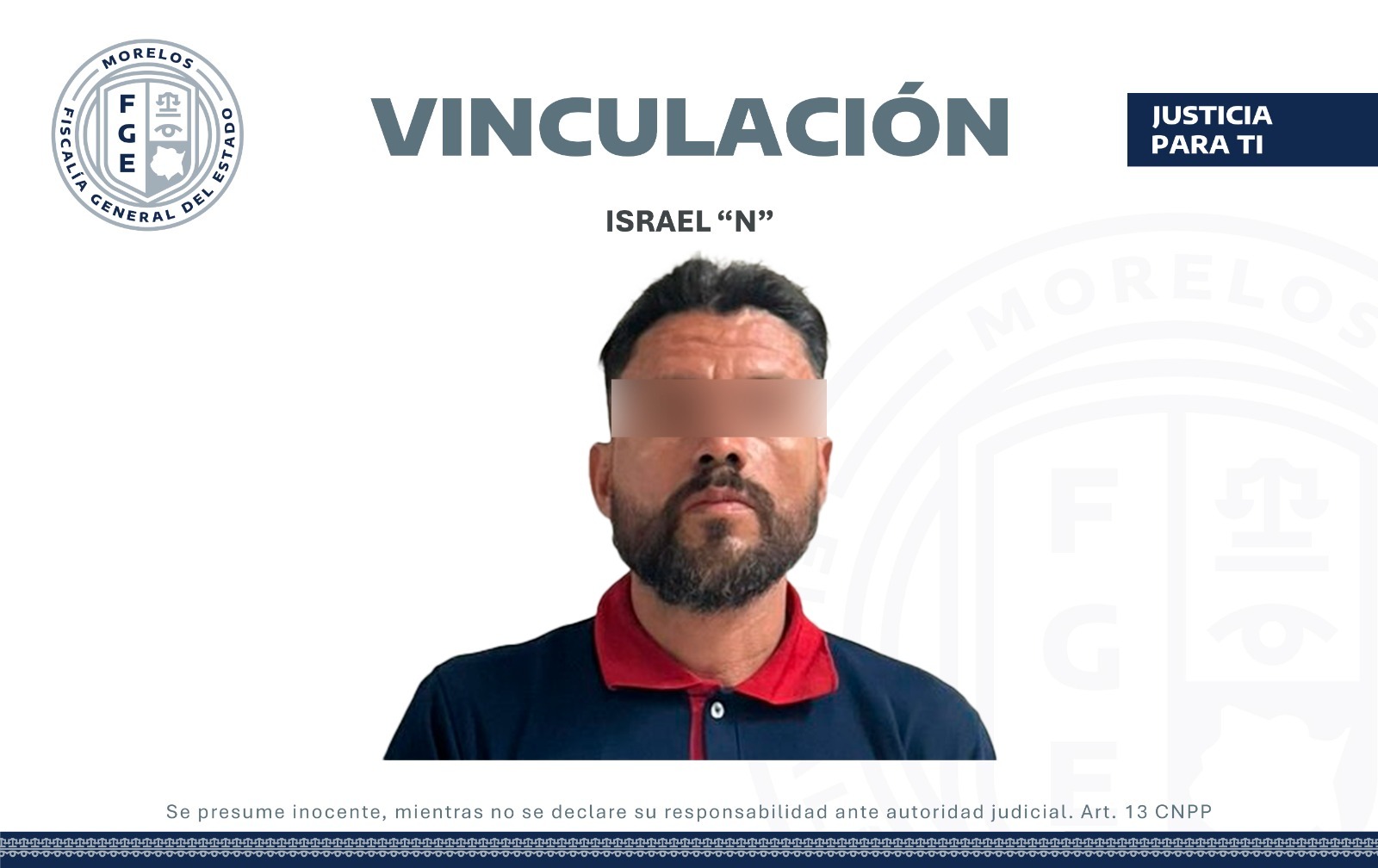 La Fiscalía Regional Oriente logró un auto de vinculación a proceso en contra de Israel “N”, por la probable comisión del delito de abuso sexual agravado, en perjuicio de una niña en el municipio de Cuautla.