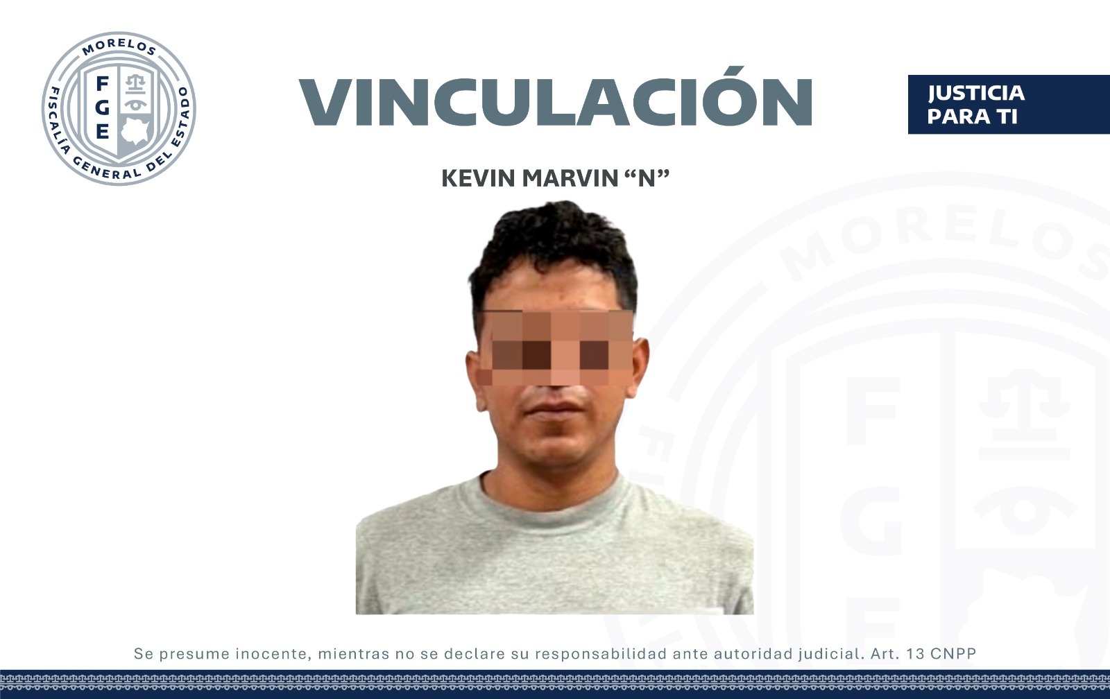 En consecuencia, el agente del Ministerio Público solicitó y obtuvo la orden de aprehensión correspondiente en contra de Kevin Marvin “N”, ejecutada por la AIC en la colonia La Cantora de Tlaquiltenango, para llevarlo ante el juez que lo vinculó a proceso por el delito de homicidio calificado.